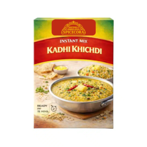Spicecora Kadhi Khichdi is a premium, ready-to-eat comfort meal that brings the soothing and nostalgic flavors of an Indian household to your table. This wholesome combination features soft, perfectly cooked Khichdi—made from a protein-rich blend of rice and moong dal—paired with a delicate, mildly spiced Kadhi prepared from fresh curd and gram flour. Tempered with pure ghee, mustard seeds, and aromatic curry leaves, it offers a gentle and easily digestible dining experience. It is the perfect choice for a light yet satisfying meal that provides a "made-at-home" authentic taste with the convenience of instant preparation.