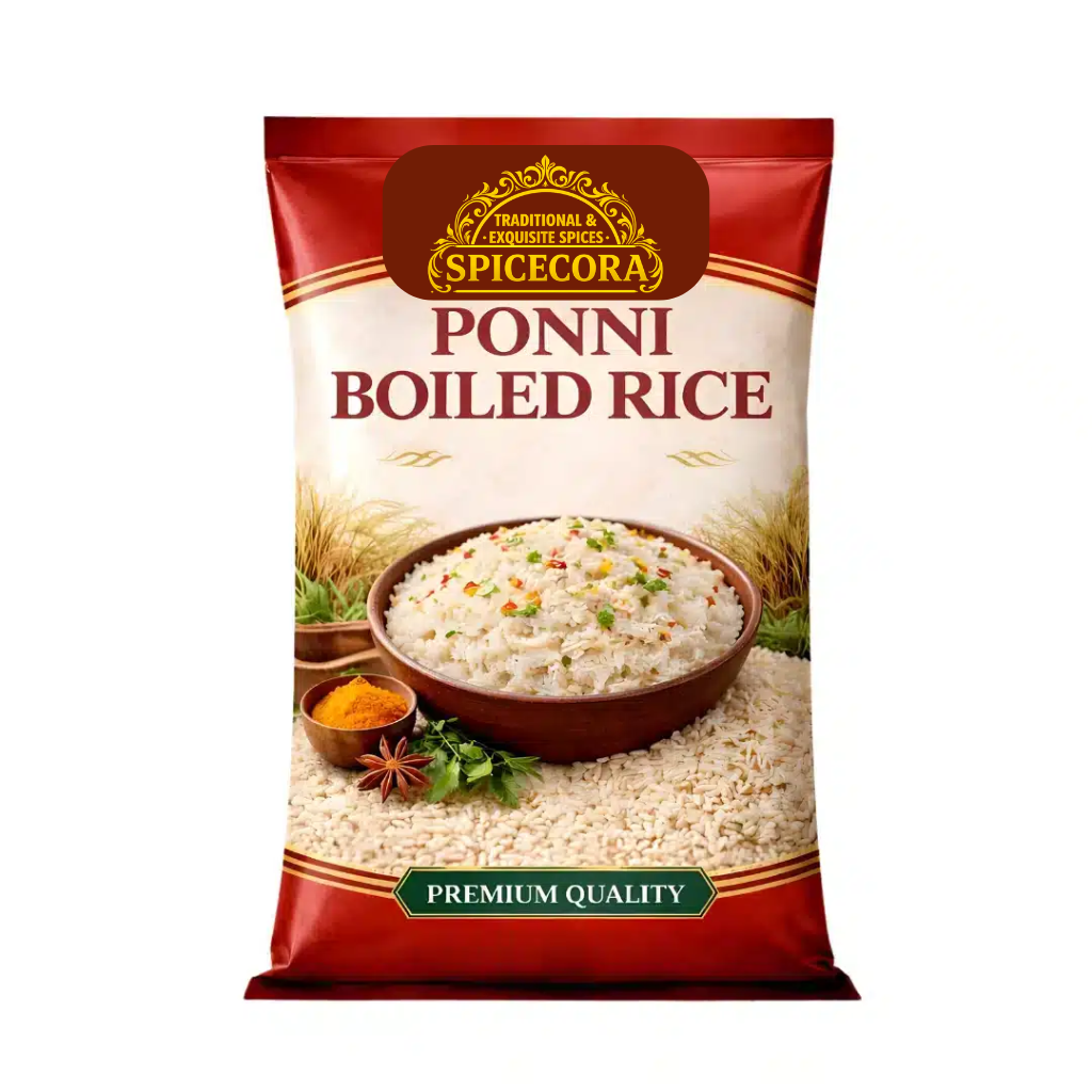 Spicecora Ponni Boiled Rice is a premium-quality parboiled grain, celebrated for its characteristic firm texture, slender shape, and mild, earthy aroma. Sourced from the fertile deltas of South India, this high-grade rice undergoes a specialized parboiling process that locks in essential nutrients while ensuring the grains remain light and non-sticky after cooking. With its easy digestibility and consistent fluffy finish, Spicecora Ponni Boiled Rice is the quintessential “daily gold” for traditional households, serving as the perfect, low-glycemic companion for sambar, rasam, and comforting curd rice.